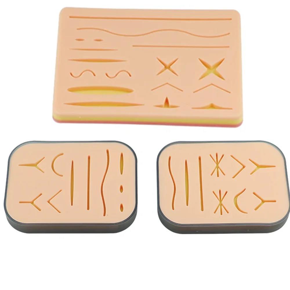 Комплект для наложения швов является идеальным тренировочным устройством для отработки навыков нанесения и снятия швов, а также правильного вязания узлов.