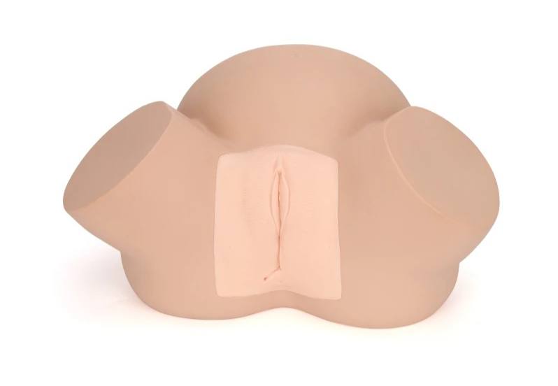 Тренажер представляет собой анатомическую модель нижней половины туловища с проксимальными отделами бедер женщины.